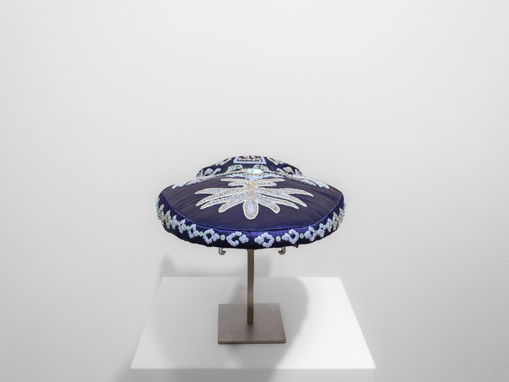 Entirely hand-embroidered by the artist, the work brings together traditional techniques with more experimental, cross-disciplinary approaches. Drawing from histories of spiritual textile-making, the piece resonates with current conversations around craft and material knowledge, providing a tangible framework to examine time, labour and meaning.