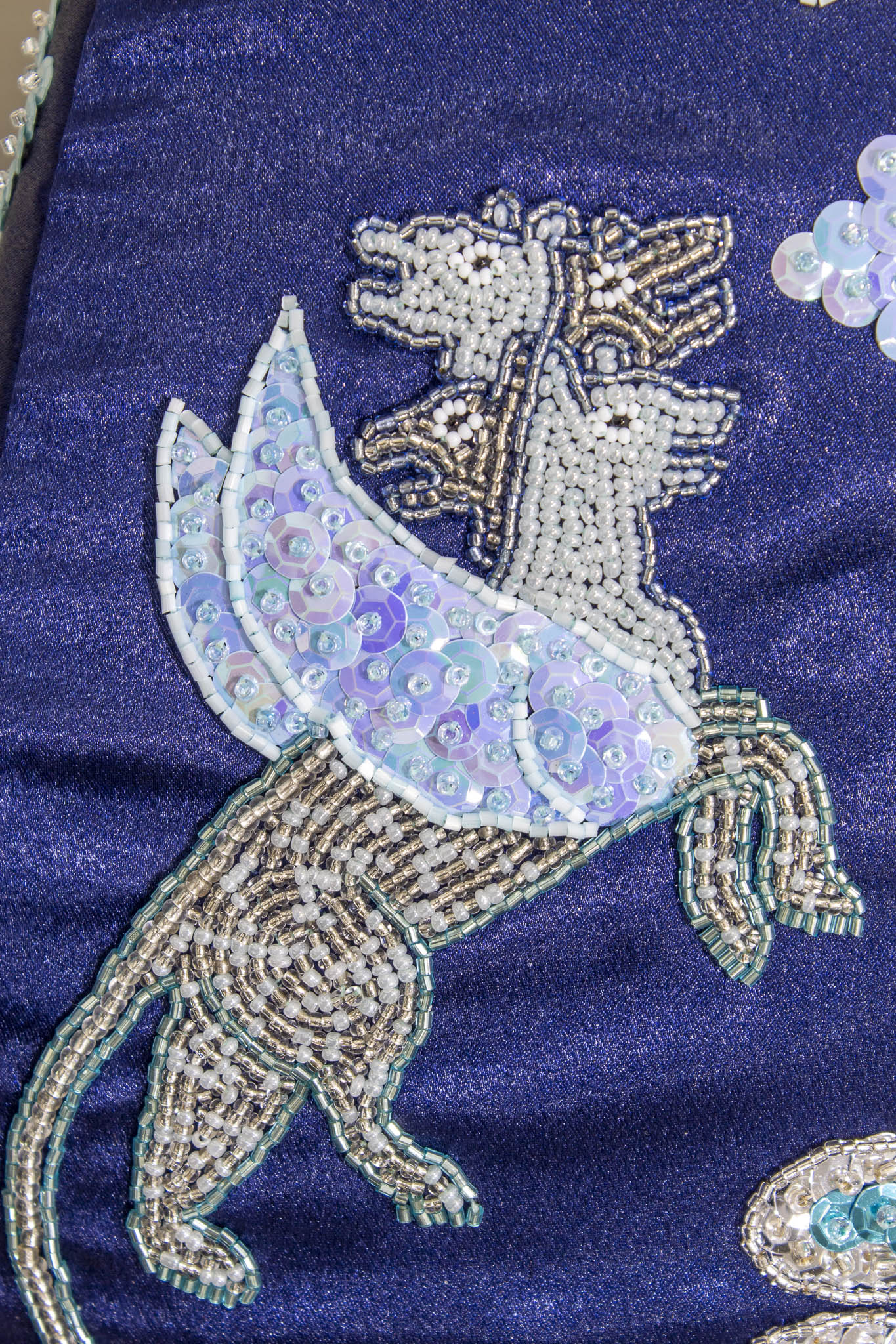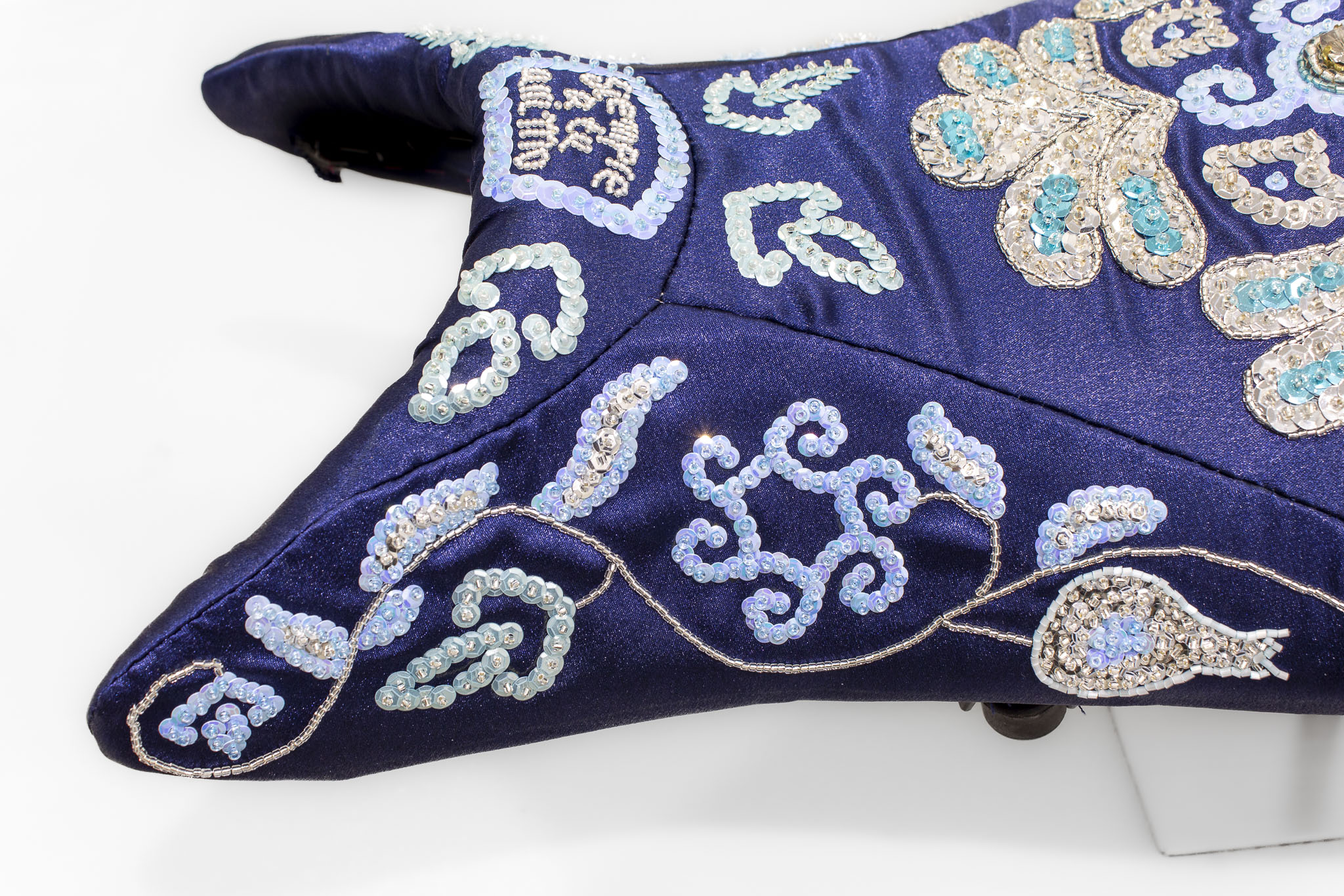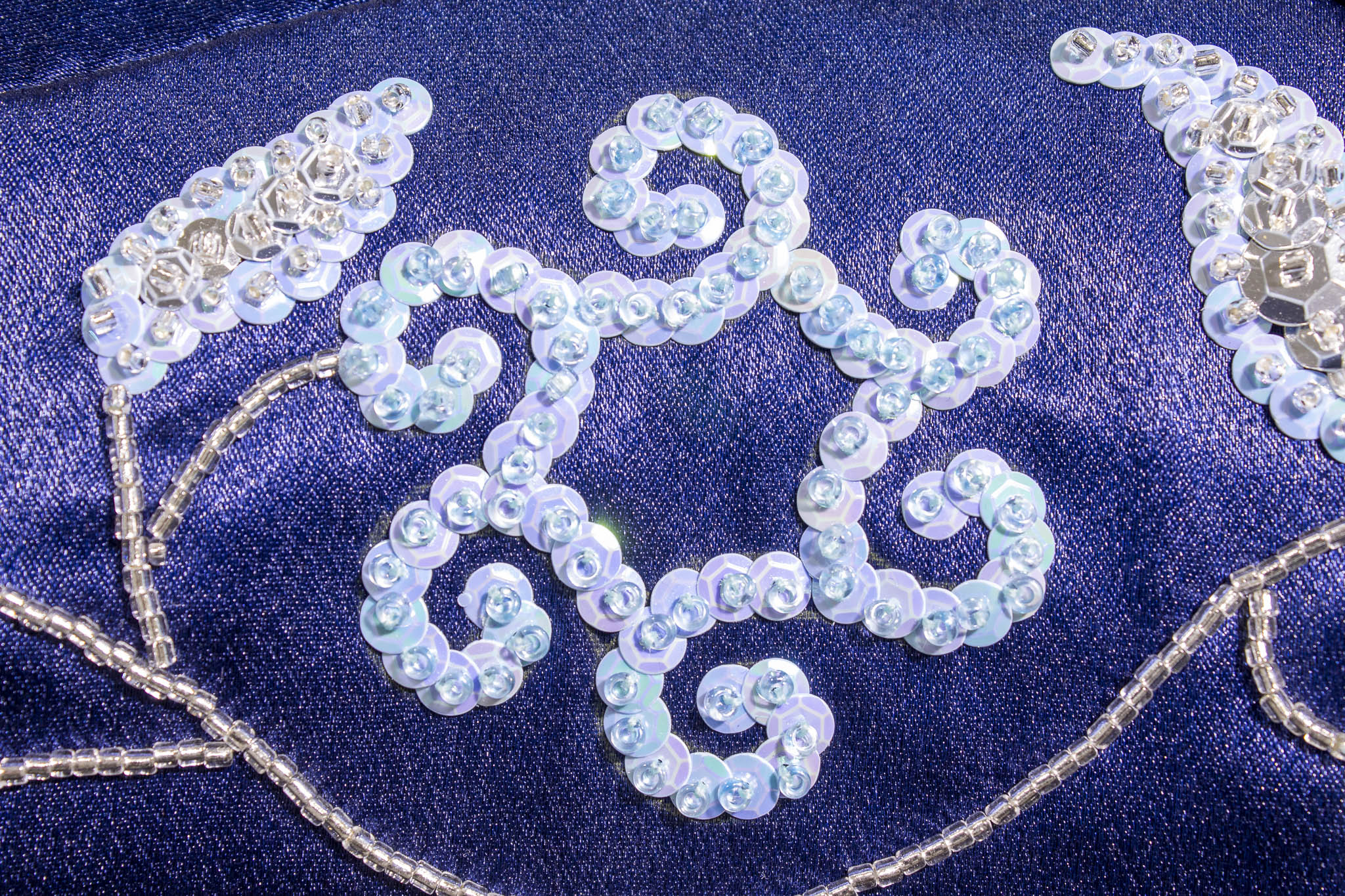 Suzuki Gladius SFV650 motorcycle seat, textile, glass beads, sequins.